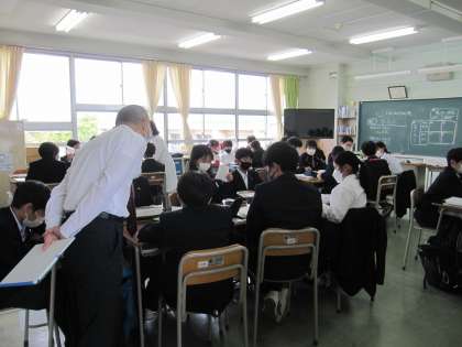 身近な植物の分類について班に分かれて学習しています。どんな特徴で分類しようか話し合っているところにちょうど校長も授業観察に入りました。校長も授業の様子をよく見に来ますのでよろしくお願いします。(副校長)