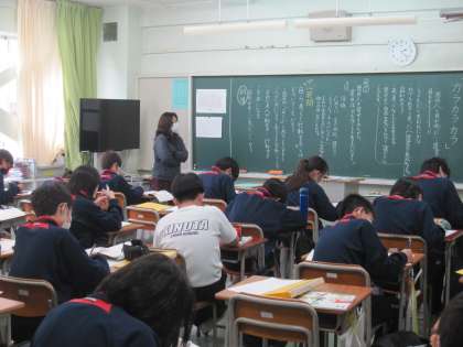 生徒は自分の経験を振り返り、どうすればよかったのかを考えたり発表したりしていました。