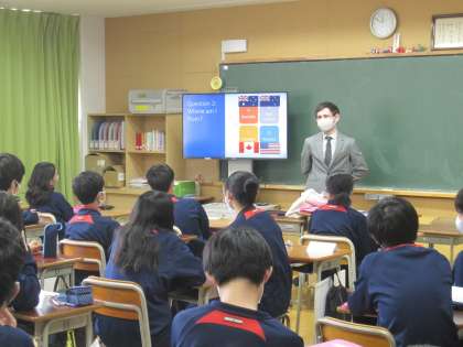 ちょうどALTの自己紹介クイズで盛り上がっていました。