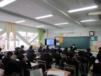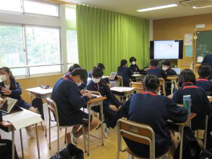1校時はZoomを使用した全体学活で、改めてIpadの使用方法について確認を行いました。生徒と教職員が共に確認したことは大変有意義だったと思います。これからもタブレットを文房具として活用できるよう進めてまいります。