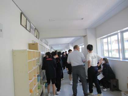 職員室前では入部届を提出する生徒が顧問の先生を待っています。