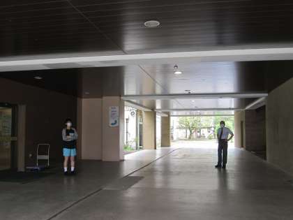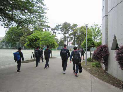 生徒の登校を迎えているのは校長とI組の教員です。朝からさわやかな挨拶をするだけでも気分が晴れやかになりますね。
