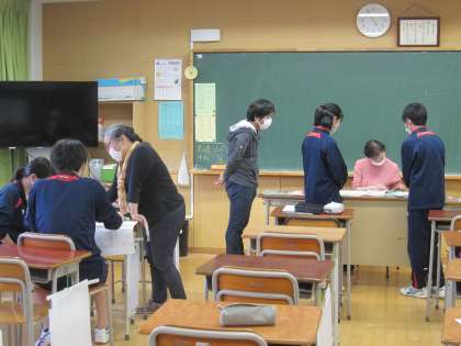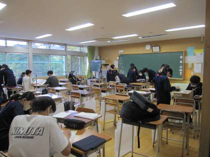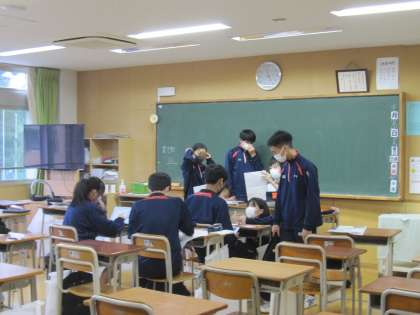 放課後、3年生が2日目の班行動計画の仕上げを行っています。半日で京都駅から比較的近いところを3か所くらい見学する計画を立てています。