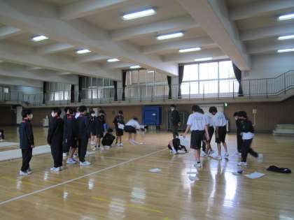 格技室では上体おこしと立ち幅跳びの計測を行っています。