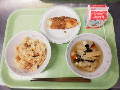 クラスによっては、ご飯、魚、若竹汁のどれかが多めに残っているといった様子が、時々見られました。しかし、「全ての料理を多く残している」クラスはありませんでした。4月の汁物は具が少なめだったので今日の若竹汁が具だくさんに感じた、欠席者が多くて魚が多く残ってしまった、様々な理由が考えられます。また、4月の「たけのこご飯」に比べると、今日の混ぜご飯の残菜はかなり少なかったです。今後もクラスの残菜について注視していき、より良い形を目指していきたいと思います。