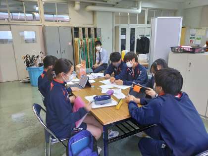 各種委員会の日、役員会では生徒会新聞の内容を話し合いながら各種委員会の終わりを待っています。