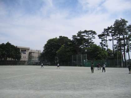 I組の生徒は開放感いっぱいで広々と校庭を使っています。