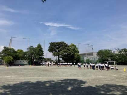 昨日の雨模様はなくなり、カラッと晴れた中で運動会練習をしております。