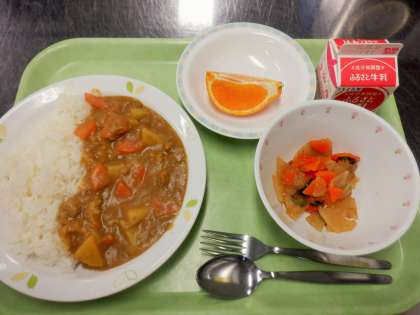 4月にカレーライスを作ったとき、私自信中学校の給食のカレーライスを初めて食べたのですが、少し辛さだけが前面に出ていた印象でした。残菜もクラスによってまちまちだったので、もしかしたら辛くて食べられない子もいたのではと感じました。そこで、今回はカレー粉の量を減らし、すりおろしたりんごや粉チーズなどを加えてみました。悪くはなかったのですが、もう少しコク深い味にできる気がします。次回は、マンゴーチャツネやトマトケチャップを追加してレシピを作り直したいと思います。