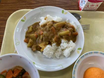 給食は人気メニューのカレー。