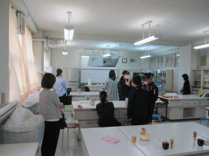 茶道で先輩が後輩にお点前を教える姿を間近でご覧いただきました。
