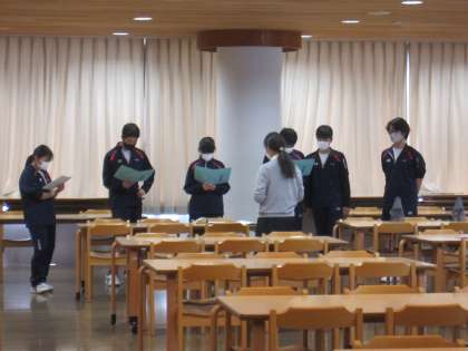 3年生の修学旅行委員の生徒は広島でのセレモニーのリハーサルを行っています。いよいよ明日は広島ですね。