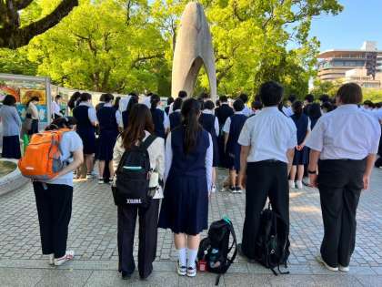 私たちは学校での平和学習を通して、戦争によってもたらされる被害や核兵器の恐ろしさについて考えてきました。その中で、今ある私たちの平和な日常は、戦争の中でも生き延びようとあきらめなかった方々のおかげで成り立っている、とても価値のあるものだと気づくことができました。私たちは、今の平和な日常を作ってくださった人々に感謝し、「今」という時を生きていることに感謝したいです。