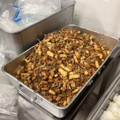 この日の残菜です。一生けんめい作った給食が残ってくる姿を見ると、心にくるものがあります。この日は金平炒めが1番多く、次いでみそ汁、ご飯の順でした。金平炒めが副菜としてはボリュームがあったので、みんなも食べきるのが難しかったのだと思います。そこは栄養士が反省するところです。次回はバランスがとれるよう努力するので、みんなも少しでも残菜が減るよう、大切に食べてください!