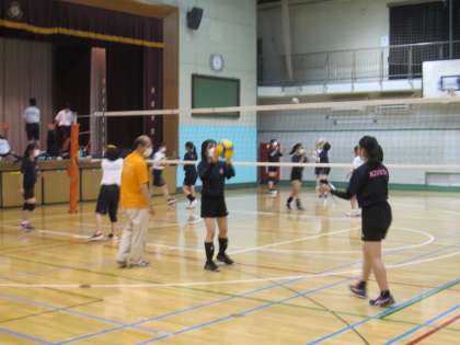体育館ではバレーボール部とバスケットボール部が練習しています。