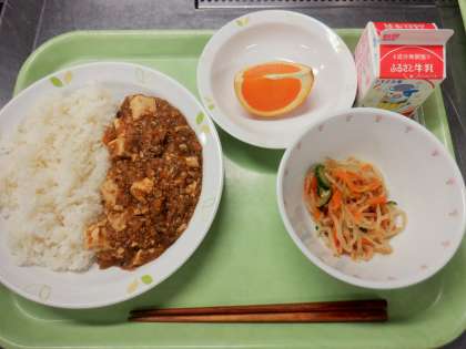 マーボー豆腐ご飯はどうしてもボリュームが出てしまうので、残菜がけっこう出てしまいましたが、完食してくれたクラスもありました。残りが少ない食缶を見ると、やはり給食室も嬉しいです。
