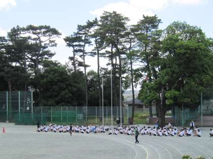 体育委員の代表は昨年全校でできなかった思いもふまえ、今年全校で行えることへの抱負をのべました。全員リレーでは、全力で走りきり最後にゴールしたクラスに拍手を送る姿にみんなの温かさを感じました。2学年