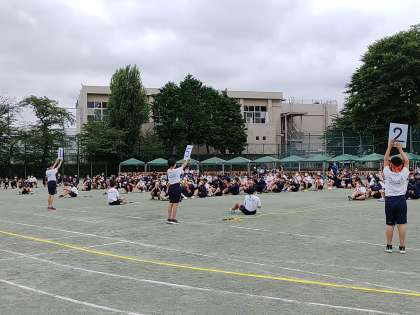 順位が決定したら発表に合わせて順位の札を掲げます。(副校長)