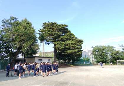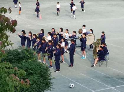 校庭でリハーサルを行っています。前回音楽室で聞かせてもらったときよりもパワーアップしています!