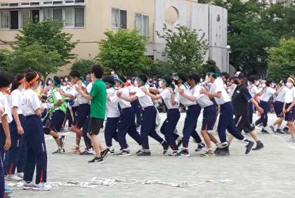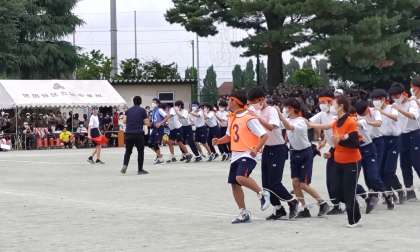 予行練習よりもスピードアップした各クラスのむかで、担任とともに走りました!
