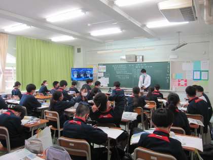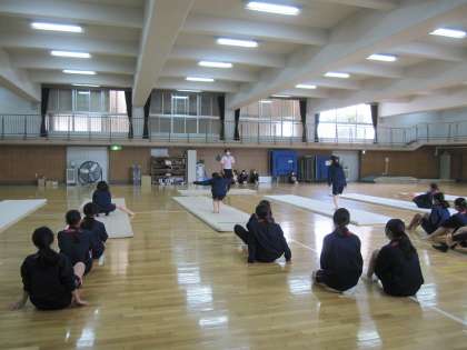 体育は、マット運動、前転や後転などを組み合わせて発表しました。