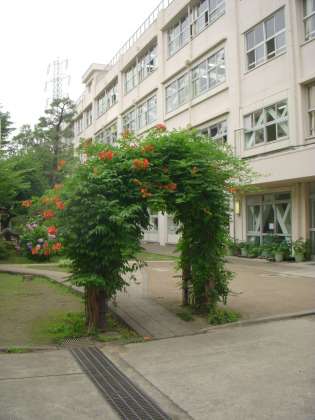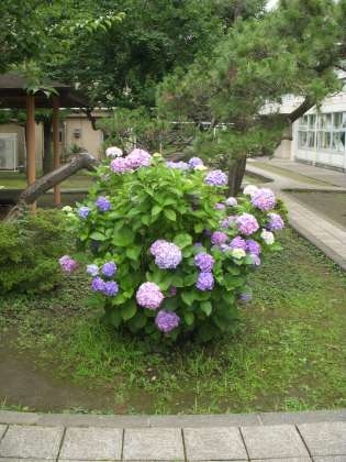 梅雨時になり、校内にはノウゼンカズラやアジサイの花が咲いています。