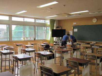 毎朝、主事が各教室のごみの回収を行っています。感染症対策で始めたことを継続しています。