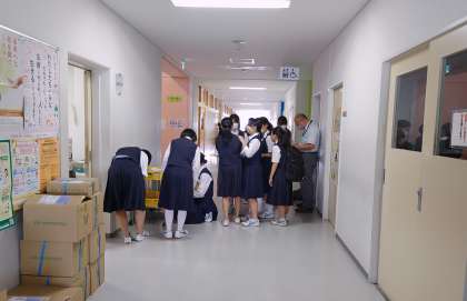 放課後、職員室には質問をする生徒や、回収した提出物を届ける係の姿がありました。(副校長)