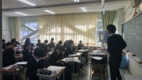 画像は、自然物や人工物の特徴や留意するところなど、教室内で確認しているところです。