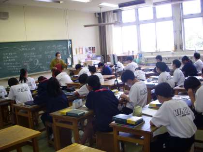 画像は、自然物や人工物の特徴や留意するところなど、教室内で確認しているところです。