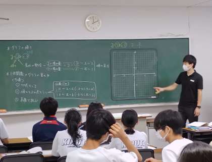 一次関数のグラフを学習しています。1年生で学習した比例のグラフを上下にずらしただけですね。