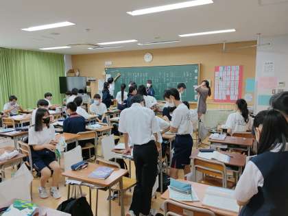 俳句や和歌についてグループで発表します。今日は、その分担について話し合っていました。(副校長)