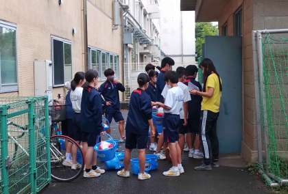 環境委員が来週火曜日の美化デーの掃除道具の準備を行っています。