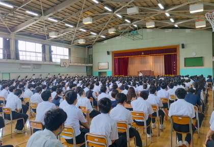 1.01の法則、昨日よりほんの少し頑張ったらそれを1年間続けたらとても大きな成果になること。もし昨日より0.99を続けたらどうなるかという話がありました。(副校長)