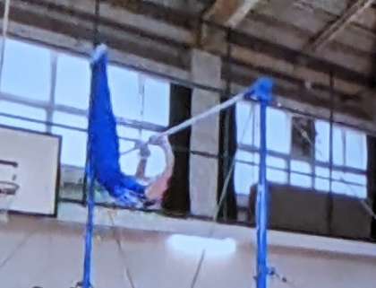 跳馬・鉄棒・床・あん馬の4種目で、オリンピックなどで見られるような技もあり、素晴らしい演技でした。