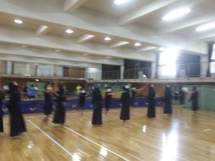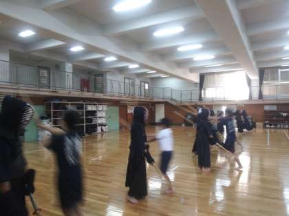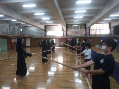 まずは基本。切り返し・小手面胴の基本打ち、面打ちなど、しばらくは基本打ちです。