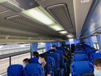 外は灼熱ですが、バス内はエアコンも効いて、快適です。