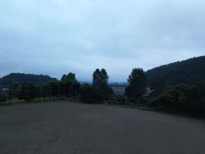 現在雨はやんでいますが、どんよりとした曇り空で、富士山は雲の中です。