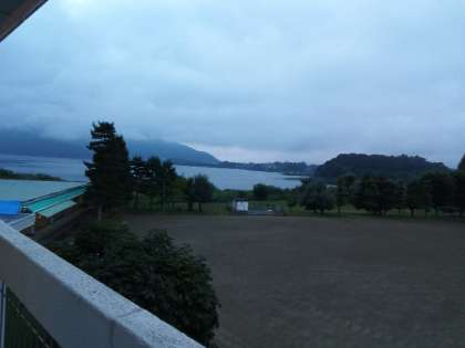 河口湖の向こう側に見えていた山々も、雲に覆われています。