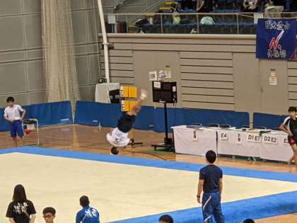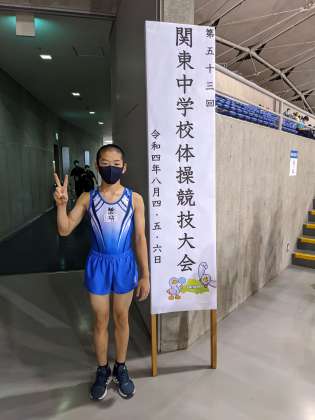 8月4〜6日に埼玉県熊谷市で行われた関東中学校体操競技大会に本校の2年生が出場しました。鉄棒、ゆか、あん馬、跳馬ともに大きなミスなく堂々と演技を披露し健闘しました。