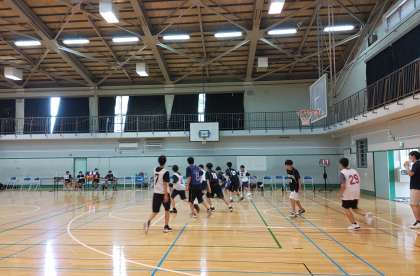 バスケットボール部が練習試合を行っています。合宿の練習の成果を存分に発揮しています。(副校長)