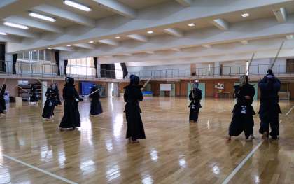 部員が増えた剣道部は、時間帯を分けて練習しています。