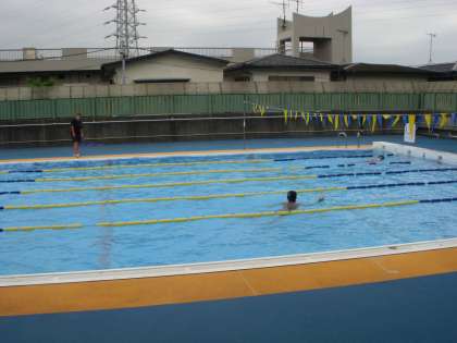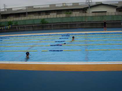 水泳部は、場面によっては、プールに入ったまま水分補給をして活動。