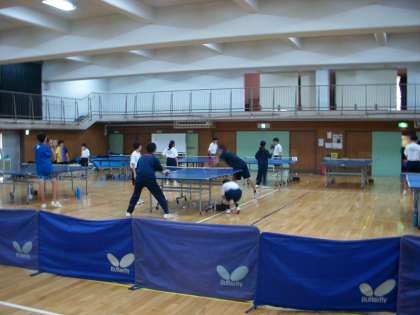それぞれ、シングルスとダブルスに分かれて練習。