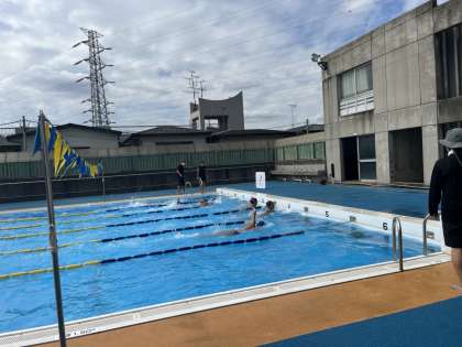 本日、水泳部は他のスイミングクラブの方をお迎えして、記録会を行いました。夏の練習の成果を発揮し頑張りました。