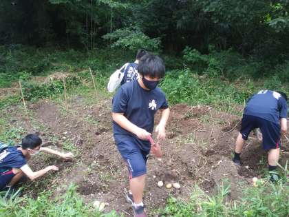 格技室近くの畑を耕し、秋じゃがいもを植え付けました。