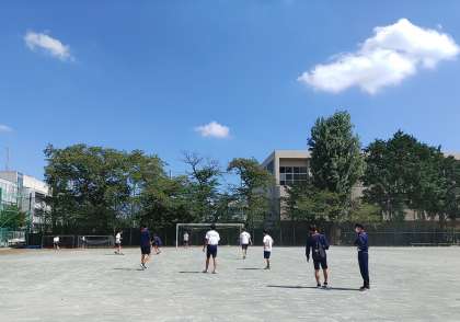 いつものサッカーや、バスケットボールのメンバーが校庭で遊んでいます。