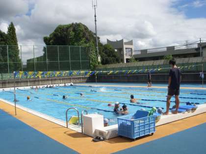 プールの授業、男子は平泳ぎ、女子はクロールの練習をしていました。