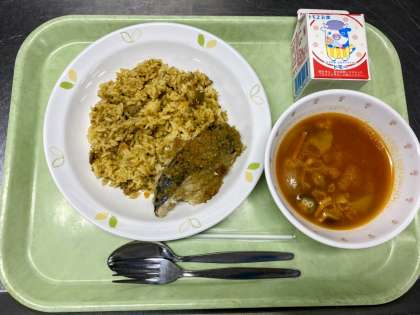 ・カレーピラフ ・魚のパン粉焼き