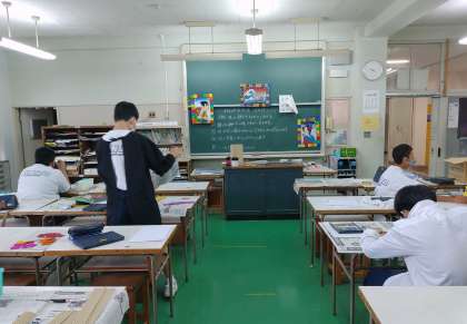 クレヨンを塗り重ねて迫力ある作品を作り上げています。(副校長)